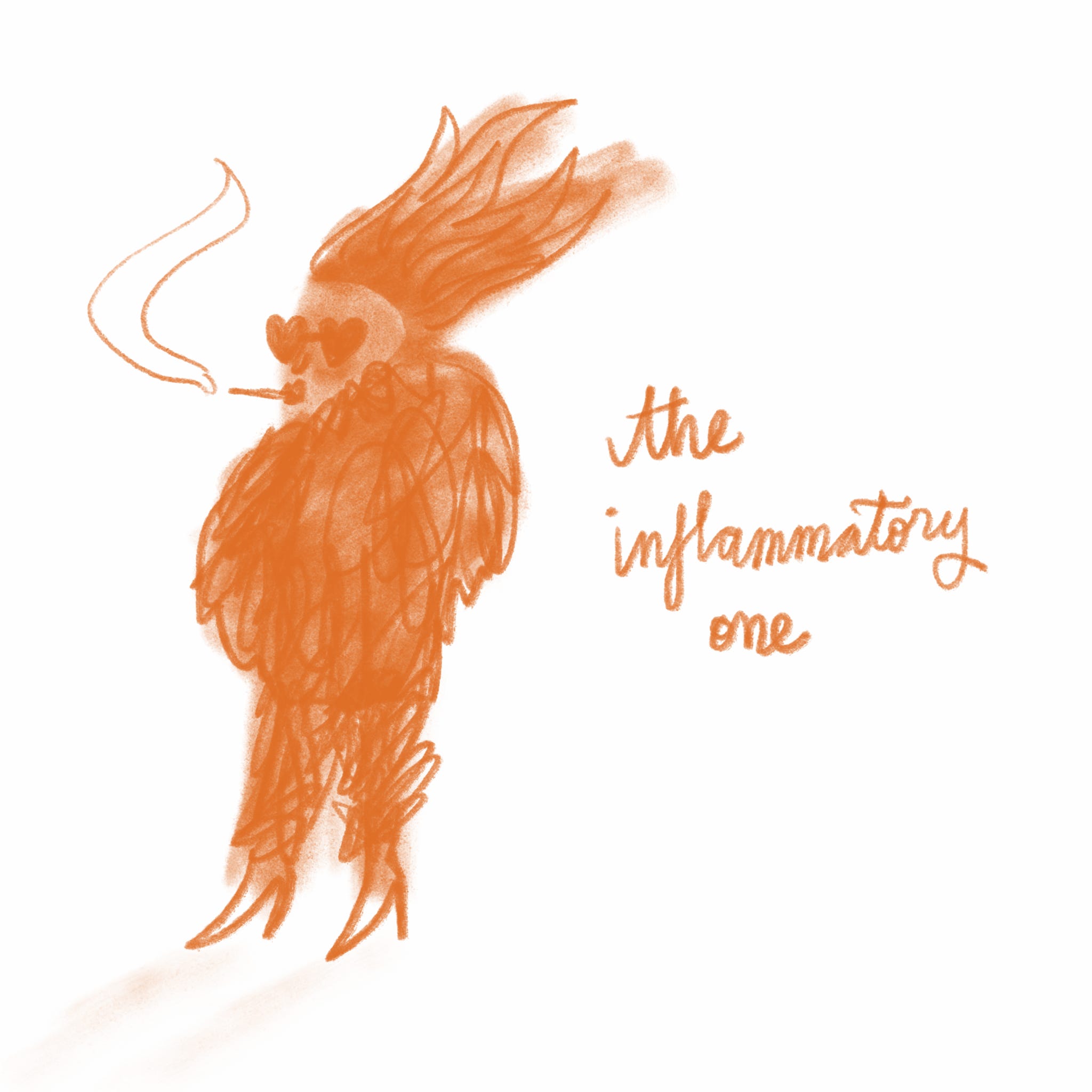 She’s unmistakeably femme; she likes to do my makeup and she does not go for subtle. The Inflammatory One doesn’t go for subtle in her own appearance either, enjoying a big splashy rash and some (un)aesthetic purple swelling. She wants to get everyone’s attention but doesn’t like to be put in a box – if they can’t decide whether she’s Lupus or Dermatomyositis or both that means they’re talking about her more, right? She’s a massive drama queen and definitely kind of vindictive and ouch is she mean when she’s angry. She’s obsessed with the sun and wants to live at the beach, and she spends all winter sulking and hiding in her room (she would love it if we moved to Florida). I kind of hate her but also appreciate her for being unapologetically herself; if it wasn’t for her, I wouldn’t have gotten admitted to rheumatology when I did. She’s still trying to decide if she can get along with our new roommate Hydroxychloroquine or not.